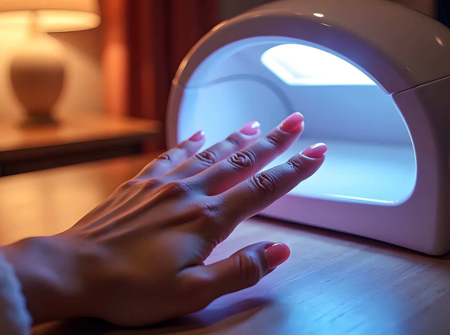 💡 Pro Tip: To further protect your hands, apply a layer of hand cream or wear UV protection gloves while drying your nails!