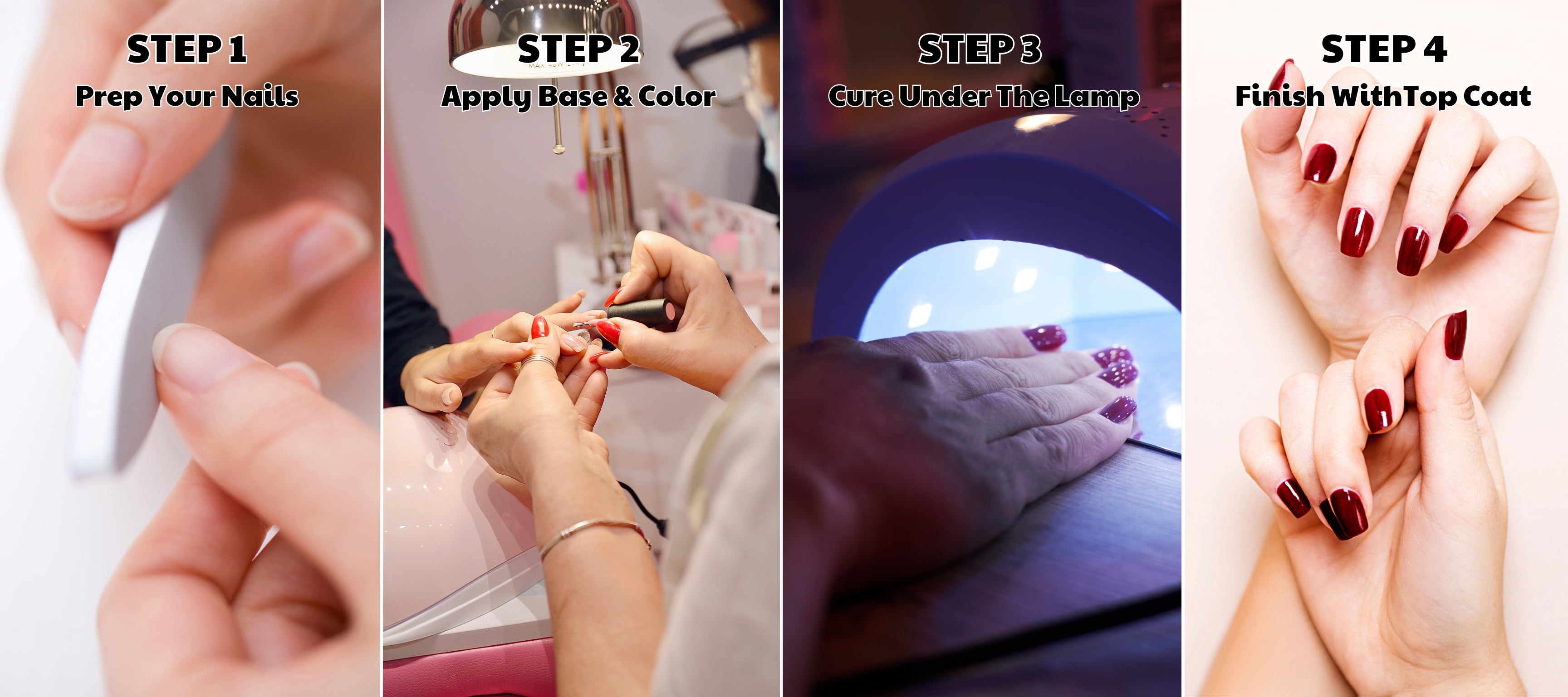 In just a few seconds with a nail dryer, you'll have a perfect manicure—fast drying, long-lasting color, with no smudging or peeling!